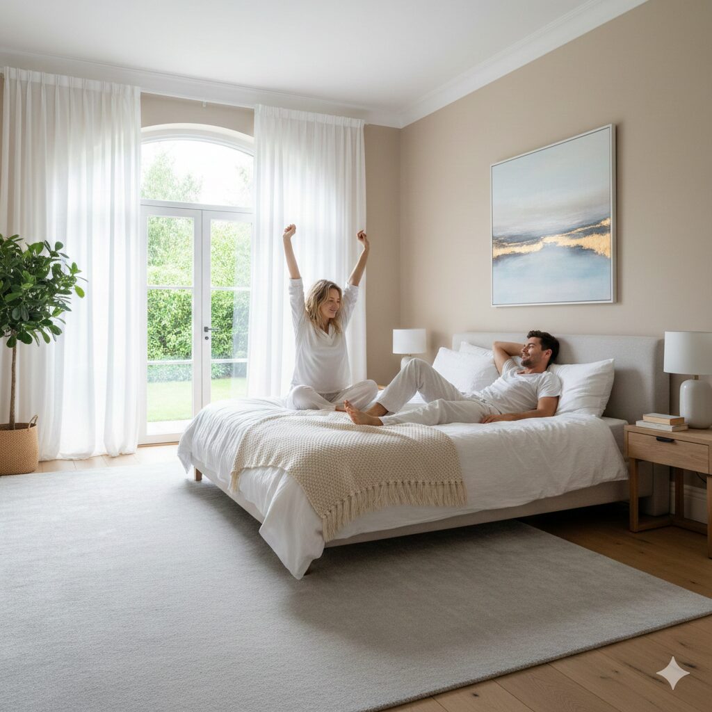 クイーンサイズは大きすぎるかな、と不安もありましたが、実際に使ってみるとその”少し広い”安心感が毎日をとても快適にしてくれました。